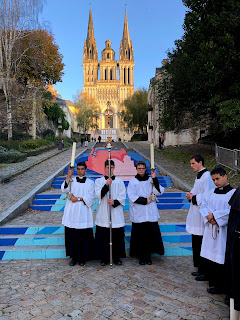 Ce dimanche 3 novembre a été l'occasion d'une action réparatrice suite à l'horrible synode amazonien. Cette procession publique (et non dans une chapelle quelconque de la FSSPX) a eu lieu à Angers même. Action publique car les actes idolâtriques qui ont été commis à Rome étaient publics et, qui plus est, sous le regard bienveillant du pape !!